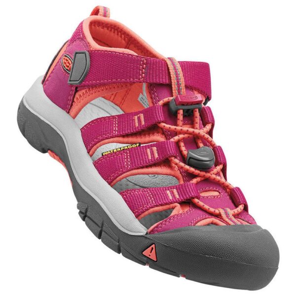 Dětské sandály NEWPORT H, very berry/fusion coral, Keen, 1014267, fuchsia Dětská verze tohoto populárního modelu je nejen skvělým letním sandálem, který děti mohou nosit kamkoli, ale také vhodným pohodlným přezutím. Rychleschnoucí popruhová páskovina je perfektní i do vody, díky pružnému šněrování se sandál snadno nazouvá i vyzouvá. Přidaný Velcro pásek umožňuje dokonale stáhnout botu k dětské noze. Uzavřená pata umožňuje pohyb i v náročnějším terénu. Díky těmto výhodám a pro děti nejpotřebnější…