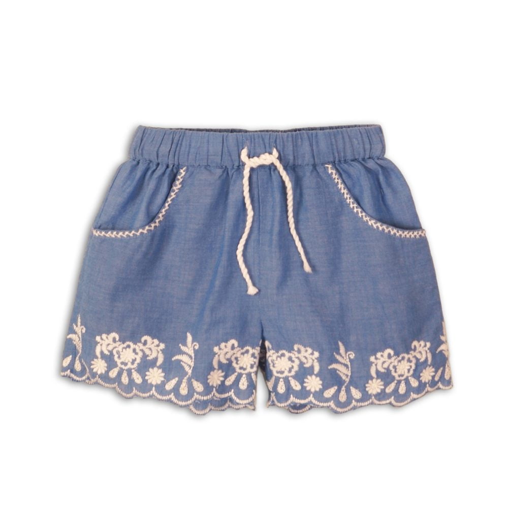 Kraťasy dívčí bavlněné vyšívané, Minoti, Picnic 5, modrá – 86/92 | 18-24m