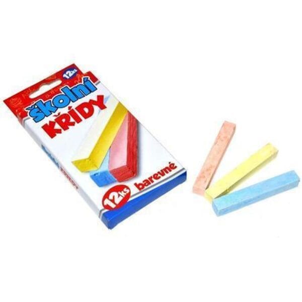 Křídy školní barevné 12 ks WIKY Barevné neprášící klasické školní křídy do školy pro všechny malé učitele a učitelky v balení po 12 kusech v krabičce. Vhodné ke psaní a malování na školní tabuli nebo se děti můžou zabavit jen tak se svými kamarády venku a pomalovat chodník.