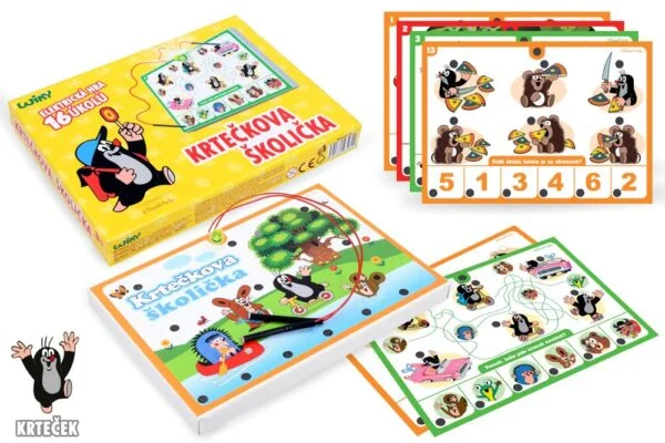 Krtečkova školička. Poznávací hra. V elektronické hře Školička mají děti za úkol odhalovat souvislosti mezi obrázky a propojovat je vodivým drátkem.