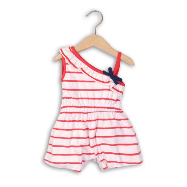 overal dívčí Minoti CORAL 3 Dívčí letní overal, jedno ramínko široké, zdobené volánem, druhé ramínko špagetové, zdobené mašličkou, v pase na gumu, mezi nohama zapínání na cvočky. Barva: růžová, modráSložení: 100% bavlna