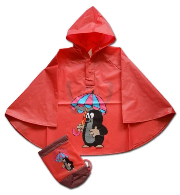 Pelerína Krtek, Pidilidi, PL0002-08, červená Dětská pelerína s motivem Krteček. Součástí poncha je i pytlíček na její uložení. Vyrobeno z materiálu PEVA, jehož výhodou je nižší hmotnost oproti PVC, odolnost proti nižším teplotám a recyklovatelnost.