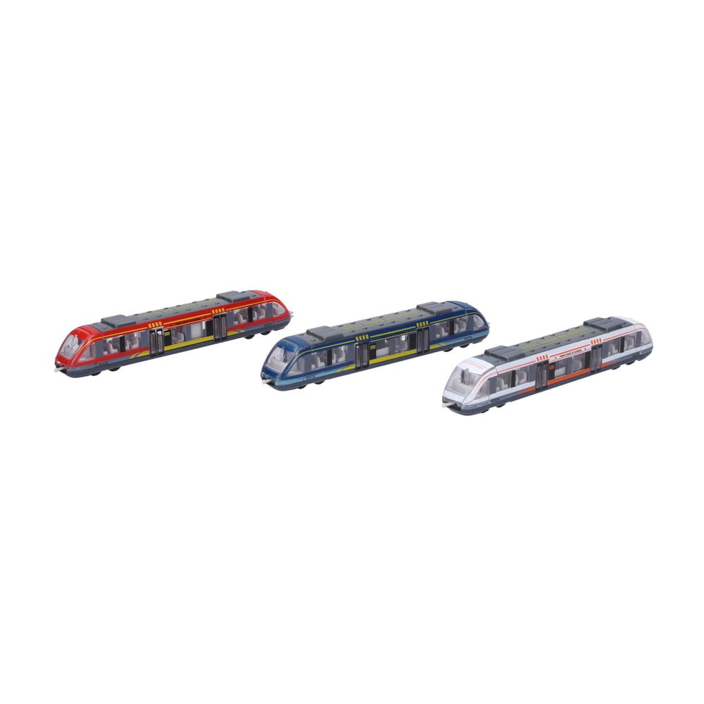 vlak kovový 18 cm, volná kola. Možná varianta 12 ks display box. 3 ast – modrá, bílá, červená Jako strojvedoucí máš velkou zodpovědnost! Doprav všechny cestující včas kam potřebují! Do školy, do práce, na výlet, k lékaři – cestování s vláčkem bude opravdový zážitek!